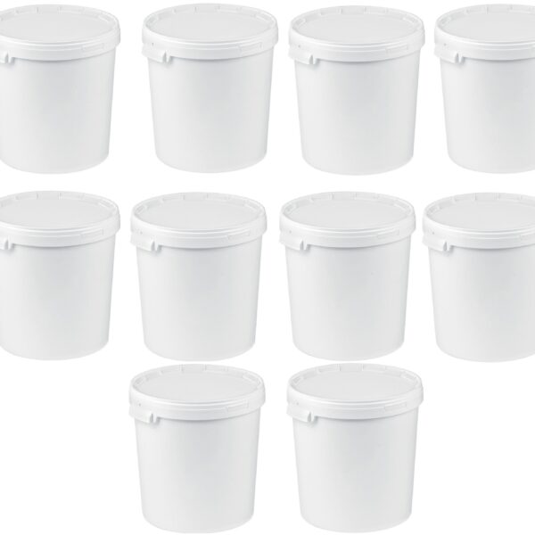 - Geeignet für den Kontakt mit Lebensmitteln: Diese Plastikeimer sind lebensmittelecht und eignen sich zur Aufbewahrung von Fisch und Fischprodukten, Obst- und Gemüseprodukten, Marmeladen, Honig, Milchprodukten und vielem mehr. Sie sind mikrowellengeeignet und beständig gegen hohe Temperaturen (Erweichungstemperatur 120 – 200 °C). Ideal für den professionellen Einsatz sowie als Allzweck-Eimer im Haushalt.